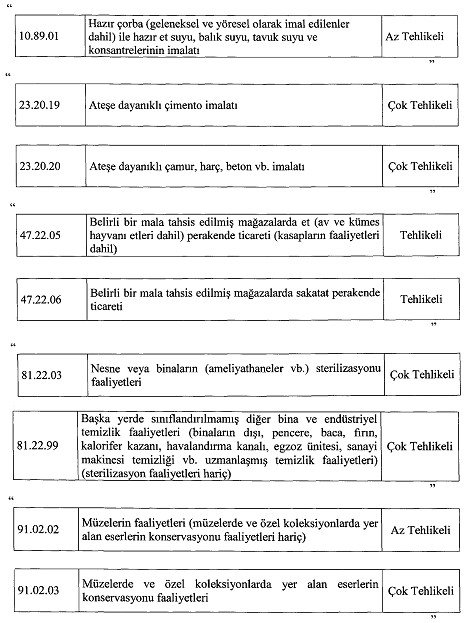 İş Sağlığı ve Güvenliğine İlişkin İşyeri Tehlike Sınıfları Tebliğinde Değişiklik Yapılmasına Dair Tebliğ: http://www.resmigazete.gov.tr/eskiler/2020/03/20200308-9.htm